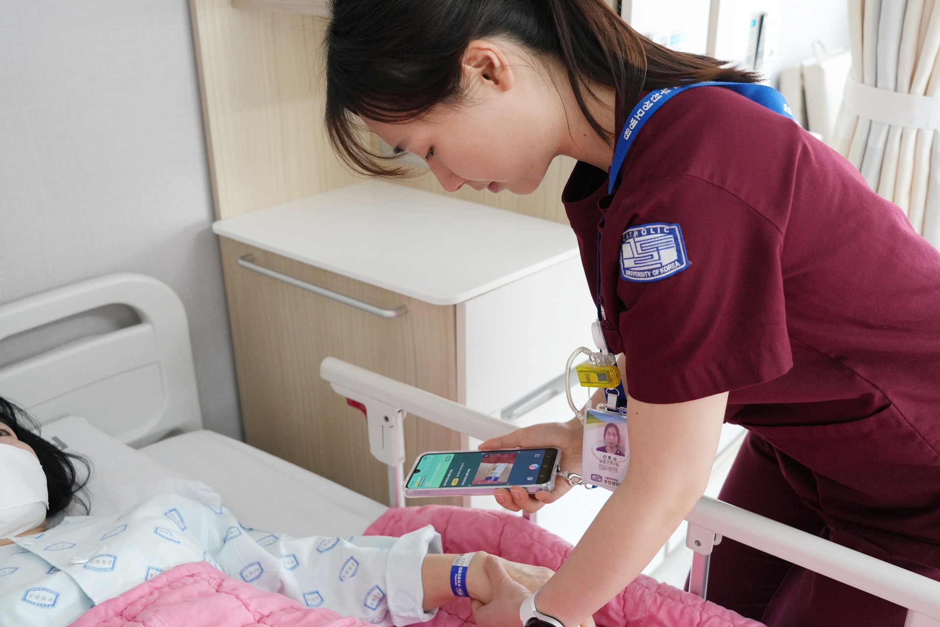 특히 98% 이상의 높은 음성 인식 정확도를 바탕으로 신속하고 정확한 기록 작성을 지원하며, 병동 환경에서도 안정적인 인식이 가능하도록 노이즈 캔슬링 기술과 AI 음성 분류 기능을 적용했다. 또한 기존 저사양 PDA 기기 대신 모바일 단말기를 도입해 휴대성과 사용 편의성을 높였다. 가톨릭중앙의료원 통합의료정보화시스템 nU와의 연동을 통해 중복 입력을 최소화함으로써 간호사의 기록 부담을 줄였다.