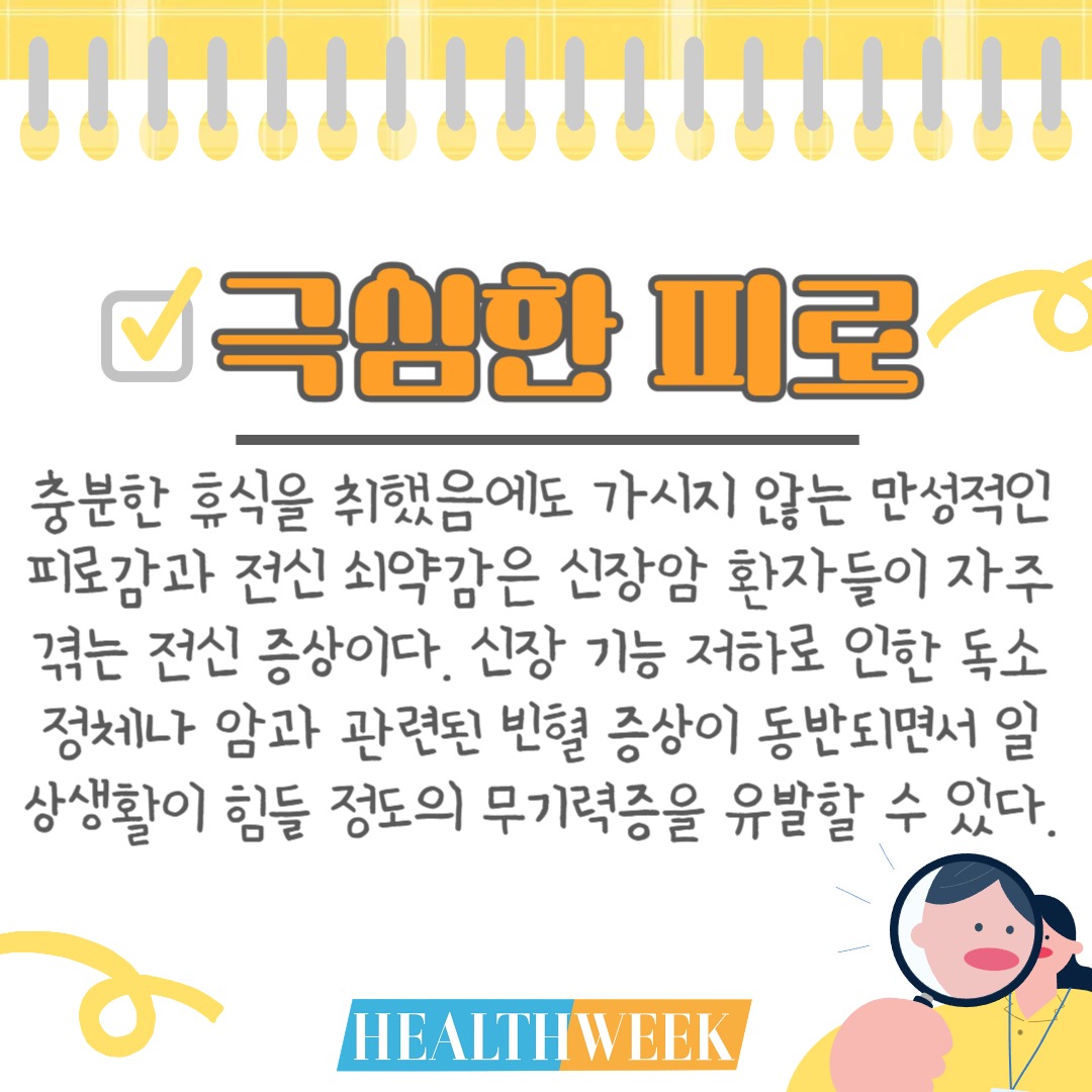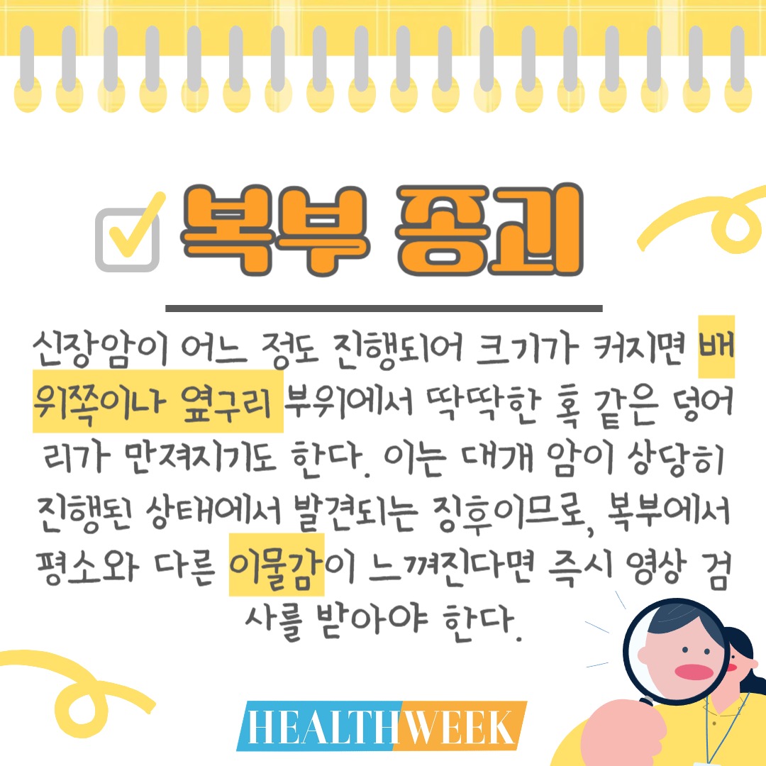 신장암은 초기 증상이 뚜렷하지 않아 ‘침묵의 살인자’로 불리기도 하지만, 병이 진행됨에 따라 신체는 특유의 신호를 보낸다. 신장암이 보내는 5가지 주요 특징에 대해 알아본다.