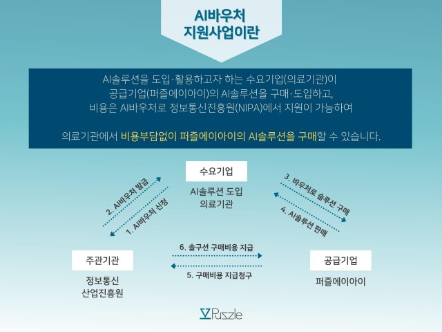 퍼즐에이아이는 정보통신산업진흥원(NIPA)이 주관하는 ‘AI 바우처 지원 사업’에 공급 기업으로 선정, 오는 24일까지 의료 음성 인식 AI 솔루션 도입을 원하는 수요 기업을 모집에 나섰다.