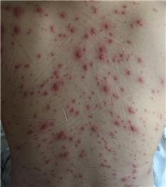 A. ▲피부발진 (고열을 동반한 전구증상이 선행), ▲1~3일 후 얼굴에서 반점 양상의 발진 시작, ▲발진이 수포 형태로 변하고 팔다리로 확산 등과 같은 양상이 보일 경우, 타인과의 직접적 접촉을 피하고 접촉한 물건 등을 타인이 접촉하지 않도록 주의하면서 신속하게 전문 의료기관에 내원하는 것을 추천한다.
