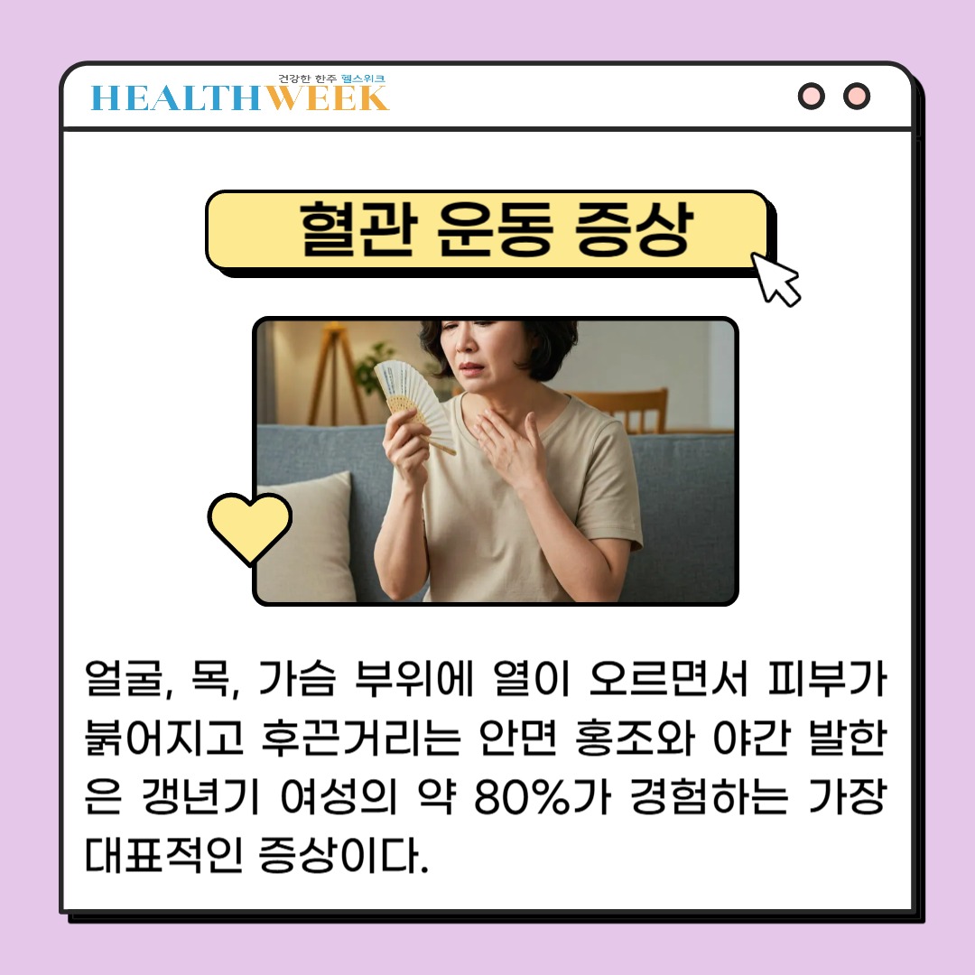갱년기는 난소 기능 저하로 인해 여성 호르몬인 에스트로겐이 급격히 감소하면서 나타나는 신체적, 정신적 변화의 시기이다. 개인차가 크지만, 많은 여성이 다음과 같은 4가지 증상을 경험한다.