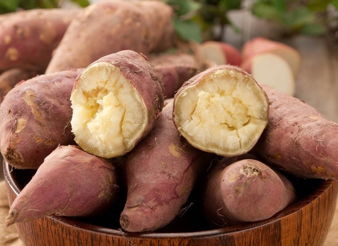 고구마를 물에 넣어 삶거나 찜기에 쪄서 먹는 것이 혈당 관리에 가장 유리하다. 이 방법들은 가열 시간이 상대적으로 짧고 수분이 유지되어 전분의 단순당화가 덜 일어나며, GI가 45~60 내외로 낮게 유지된다. 혈당 상승 속도가 완만하므로 가장 권장되는 조리법이다.