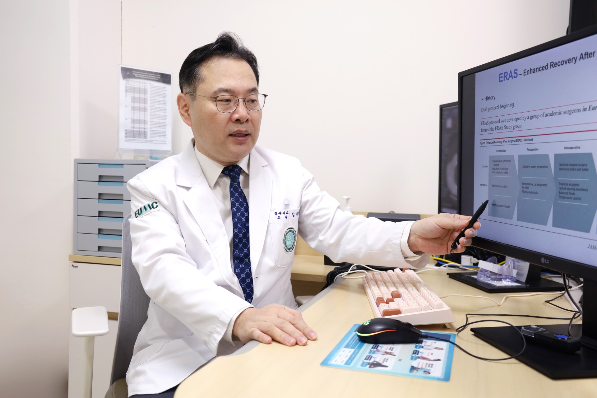 기존 수술이 ‘수술 자체’에만 초점을 맞췄던 것과 달리 ERAS 프로그램은 ‘환자의 전체 회복 과정을 체계적으로 관리’하는 것에 초점을 맞춘다. 김 교수는 “ERAS 프로그램은 하루 단위의 회복 목표가 미리 설정돼 있다”며 “통증·호흡·영양·운동을 각각 따로 보는 것이 아니라 통합 관리하기 때문에 결과적으로 환자가 더 빨리, 더 편안하게, 더 안전하게 회복할 수 있다”고 소개했다.