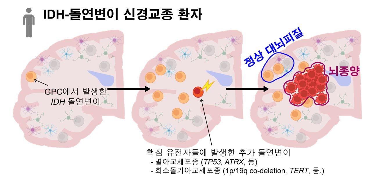 난치성 뇌종양 IDH-돌연변이 신경교종의 시작을 밝힌 연구 결과가 나왔다.