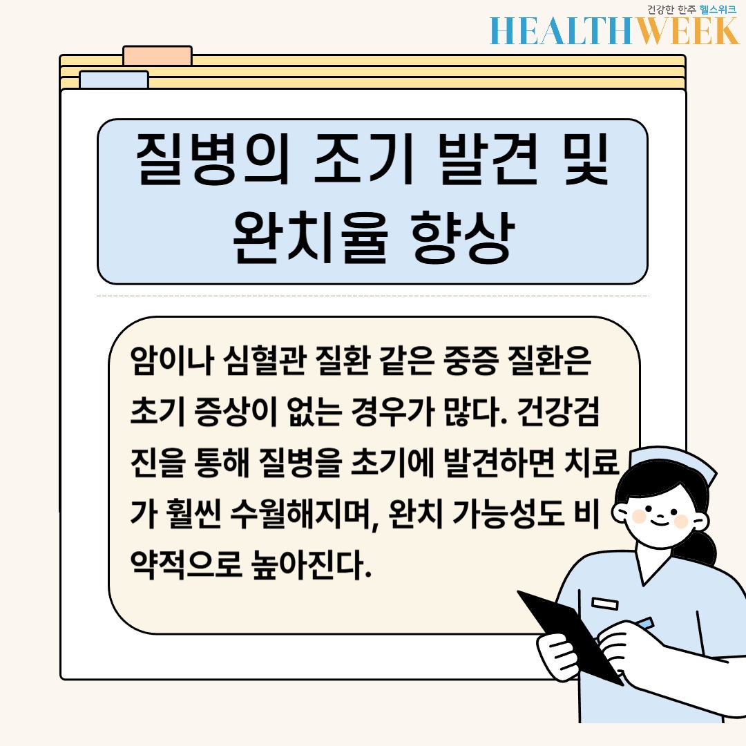 질병은 예고 없이 찾아오지만, 건강검진은 그 신호를 미리 읽어낼 수 있는 유일한 기회이다. ‘아직 젊으니까’, ‘아픈 곳이 없으니까’라는 생각으로 미루기보다, 정기적인 검진을 통해 현재 나의 건강 상태를 정확히 파악하는 것이 진정한 건강 관리의 시작이다.