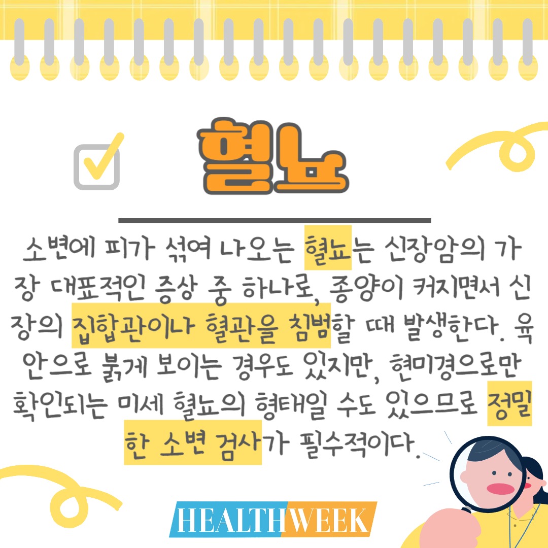 신장암은 초기 증상이 뚜렷하지 않아 ‘침묵의 살인자’로 불리기도 하지만, 병이 진행됨에 따라 신체는 특유의 신호를 보낸다. 신장암이 보내는 5가지 주요 특징에 대해 알아본다.